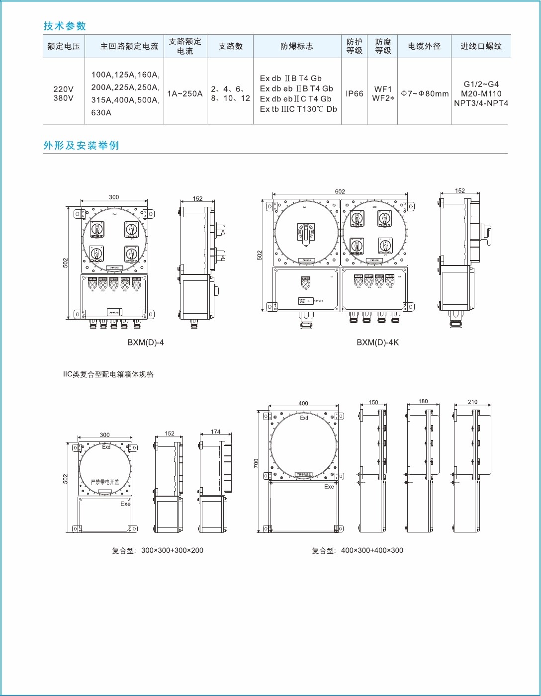 3.本系列产品整体为复合型结构,开关箱采用隔爆型结构,接线箱采用增安型结构;