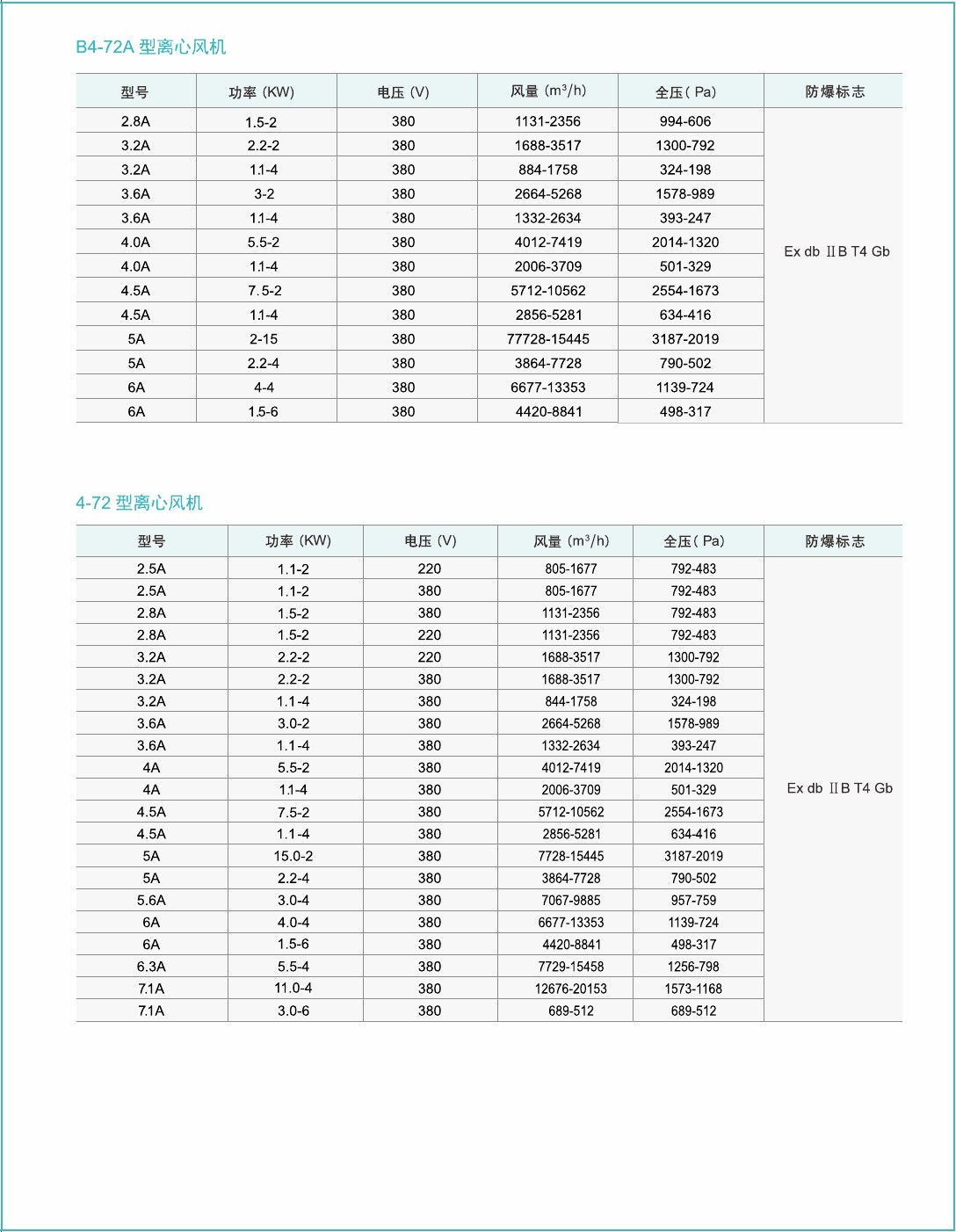 1.B4-72系列防爆离心式通风机主要由铝叶轮、机壳、进风口等部分与防爆电机组成。