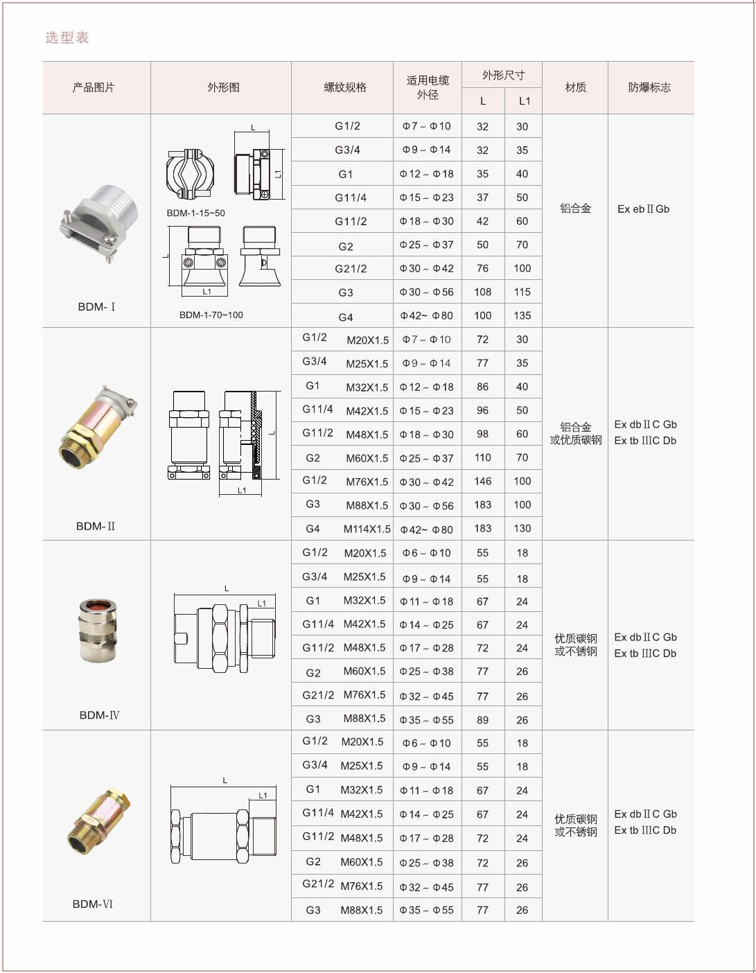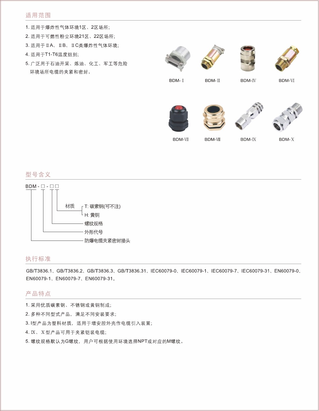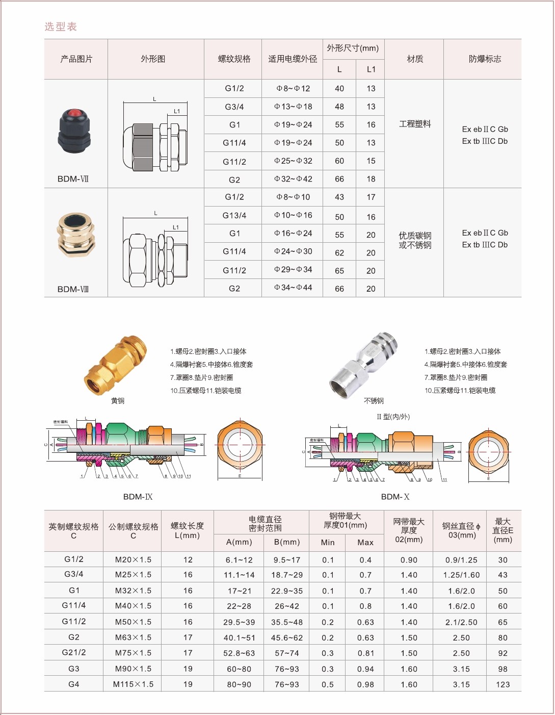 4.Ⅸ、X型产品可用于夹紧铠装电缆;