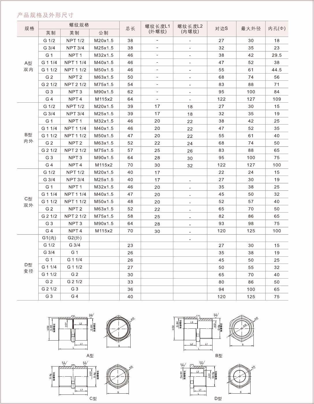 1.采用优质碳素钢制成,材质可根据用户要求采用不锈钢;2.螺纹规格可根据用户要求特制或两端规格不同;