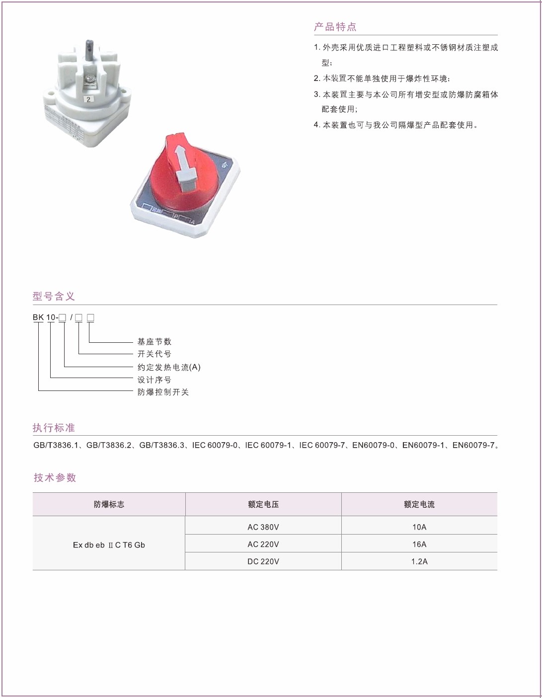 1.外壳采用优质进口工程塑料或不锈钢材质注塑成 型 2.本装置不能单独使用于爆炸性环境;3.本装置主要与本公司所有增安型或防爆防腐箱体配套使用; 4.本装置也可与我公司隔爆型产品配套使用。