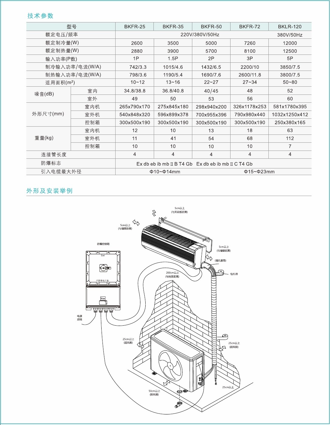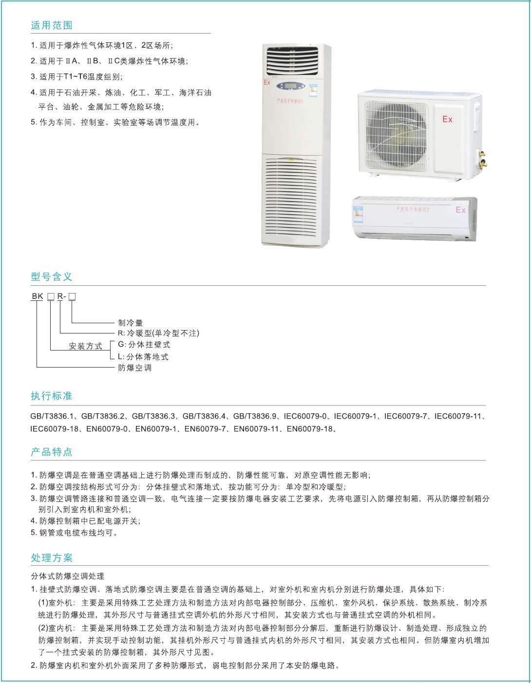 2.防爆空调按结构形式可分为:分体挂壁式和落地式,按功能可分为:单冷型和冷暖型;