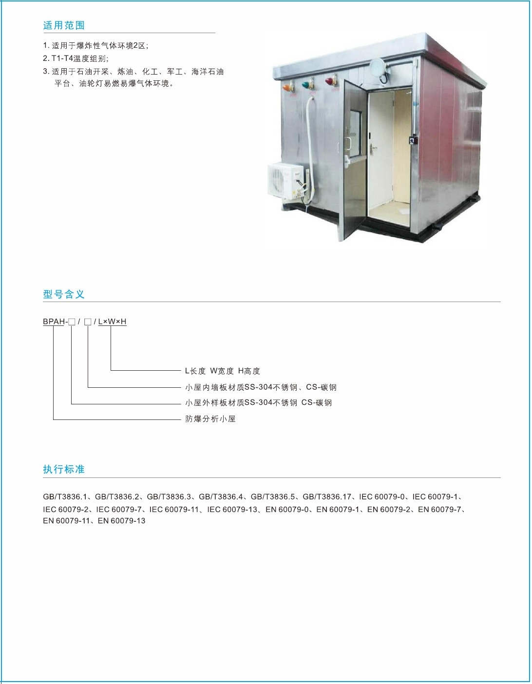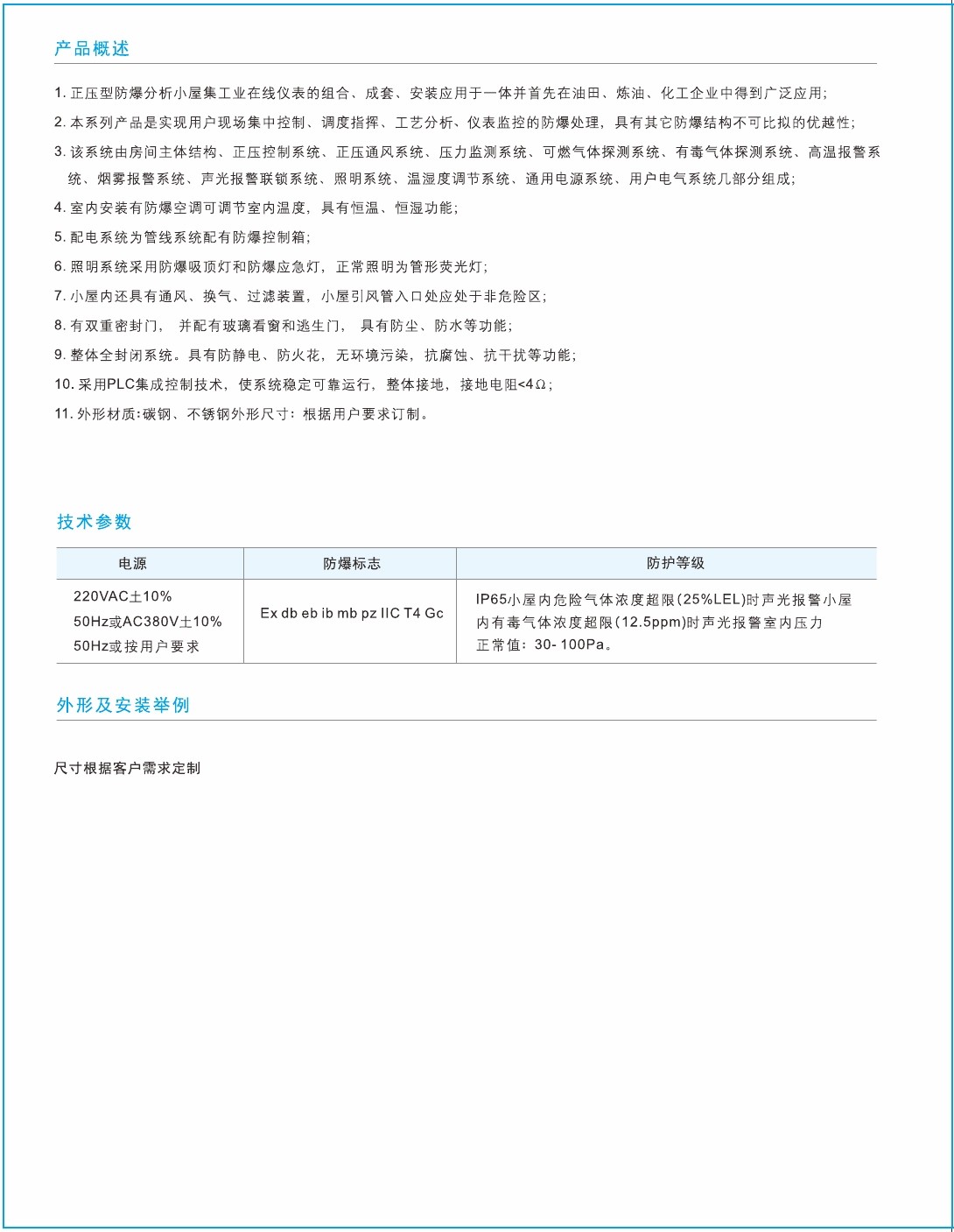 1.正压型防爆分析小屋集工业在线仪表的组合、成套、安装应用于一体并首先在油田、炼油、化工企业中得到广泛应用;