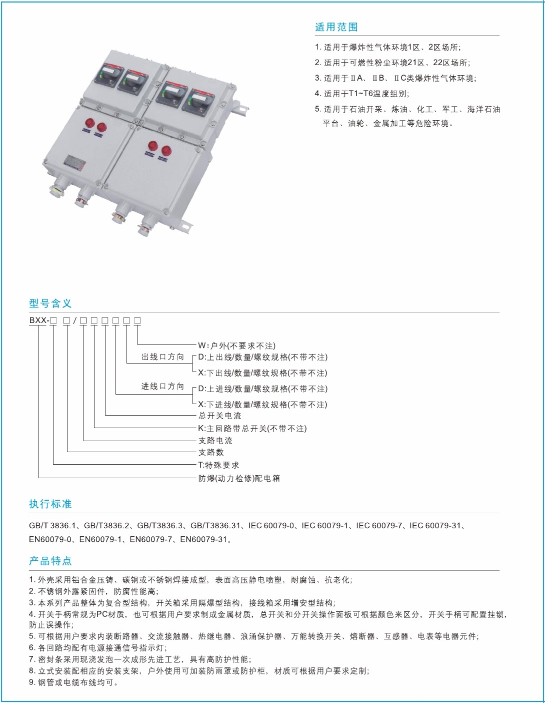 3.本系列产品整体为复合型结构,开关箱采用隔爆型结构,接线箱采用增安型结构;